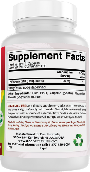 • 100 mg of CoQ10 per Capsule - 120 Capsules per Bottle.