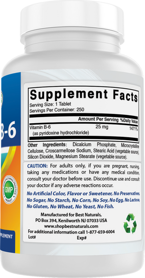 {"id":4509078225033,"title":"Best Naturals Vitamin B6 100 mg 250 Tablets","handle":"best-naturals-vitamin-b6-100","description":"\u003cul class=\"a-unordered-list a-vertical a-spacing-none\"\u003e\n\u003cli style=\"font-weight: 400;\"\u003e\u003cspan style=\"font-weight: 400;\"\u003e3rd Party Lab Tested for Purity \u0026amp; Quality.\u003c\/span\u003e\u003c\/li\u003e\n\u003cli style=\"font-weight: 400;\"\u003e\n\u003cspan style=\"font-weight: 400;\"\u003e100 mg of \u003c\/span\u003e\u003cspan style=\"font-weight: 400;\"\u003eVitamin B-6 \u003c\/span\u003e\u003cspan style=\"font-weight: 400;\"\u003eper Tablet - 250 Tablets per Bottle.\u003c\/span\u003e\n\u003c\/li\u003e\n\u003cli style=\"font-weight: 400;\"\u003e\u003cspan style=\"font-weight: 400;\"\u003eNon-GMO \u0026amp; Gluten-Free.\u003c\/span\u003e\u003c\/li\u003e\n\u003cli style=\"font-weight: 400;\"\u003e\u003cspan style=\"font-weight: 400;\"\u003eProudly Made in USA, GMP Compliant, FDA Registered Facility.\u003c\/span\u003e\u003c\/li\u003e\n\u003cli style=\"font-weight: 400;\"\u003e\u003cspan style=\"font-weight: 400;\"\u003eNo Artificial Color, Flavor, or Sweetener, No Preservatives, No Sugar, No Milk, No Corn, No Soy, No Egg, No Lactose, No Gluten, No Wheat, No Yeast, No Fish. Sodium Free.\u003c\/span\u003e\u003c\/li\u003e\n\u003c\/ul\u003e","published_at":"2020-01-24T17:28:27-05:00","created_at":"2020-01-24T17:39:47-05:00","vendor":"shopbestnaturals.com","type":"","tags":["A to Z Vitamins"],"price":1069,"price_min":1069,"price_max":1069,"available":true,"price_varies":false,"compare_at_price":2999,"compare_at_price_min":2999,"compare_at_price_max":2999,"compare_at_price_varies":false,"variants":[{"id":31959871225993,"title":"Default Title","option1":"Default Title","option2":null,"option3":null,"sku":"817716011455","requires_shipping":true,"taxable":false,"featured_image":null,"available":true,"name":"Best Naturals Vitamin B6 100 mg 250 Tablets","public_title":null,"options":["Default Title"],"price":1069,"weight":168,"compare_at_price":2999,"inventory_management":"shopify","barcode":"817716011455","requires_selling_plan":false,"selling_plan_allocations":[]}],"images":["\/\/shopbestnaturals.com\/cdn\/shop\/products\/Image-1_0c9fb0cd-7785-4b25-a101-c0e15937058b.jpg?v=1749674911","\/\/shopbestnaturals.com\/cdn\/shop\/files\/Image-4_93a66d40-4f1c-43c5-9b5f-7fea7159f4d4.jpg?v=1756227742","\/\/shopbestnaturals.com\/cdn\/shop\/files\/Image-5_89936b55-62b1-48cc-9aa6-87a3fc46ec61.jpg?v=1756227741","\/\/shopbestnaturals.com\/cdn\/shop\/files\/Image-6_f497be85-b6fb-4569-828f-9bc4e185978a.jpg?v=1756227741","\/\/shopbestnaturals.com\/cdn\/shop\/files\/Image-7_16349bfe-dfd3-4977-883e-087392dc7d6a.jpg?v=1756227741","\/\/shopbestnaturals.com\/cdn\/shop\/files\/Image-2_b93e9b21-48dc-4eb7-ab95-335102af3154.png?v=1756227741","\/\/shopbestnaturals.com\/cdn\/shop\/files\/Image-3_b441dc74-4ebe-4ce6-be2d-dfa6f0b658e8.png?v=1756227741"],"featured_image":"\/\/shopbestnaturals.com\/cdn\/shop\/products\/Image-1_0c9fb0cd-7785-4b25-a101-c0e15937058b.jpg?v=1749674911","options":["Title"],"media":[{"alt":"Best Naturals Vitamin B6 100 mg 250 Tablets - shopbestnaturals.com","id":12148833190049,"position":1,"preview_image":{"aspect_ratio":0.525,"height":2574,"width":1351,"src":"\/\/shopbestnaturals.com\/cdn\/shop\/products\/Image-1_0c9fb0cd-7785-4b25-a101-c0e15937058b.jpg?v=1749674911"},"aspect_ratio":0.525,"height":2574,"media_type":"image","src":"\/\/shopbestnaturals.com\/cdn\/shop\/products\/Image-1_0c9fb0cd-7785-4b25-a101-c0e15937058b.jpg?v=1749674911","width":1351},{"alt":null,"id":37658518356185,"position":2,"preview_image":{"aspect_ratio":1.0,"height":1500,"width":1500,"src":"\/\/shopbestnaturals.com\/cdn\/shop\/files\/Image-4_93a66d40-4f1c-43c5-9b5f-7fea7159f4d4.jpg?v=1756227742"},"aspect_ratio":1.0,"height":1500,"media_type":"image","src":"\/\/shopbestnaturals.com\/cdn\/shop\/files\/Image-4_93a66d40-4f1c-43c5-9b5f-7fea7159f4d4.jpg?v=1756227742","width":1500},{"alt":null,"id":37658518388953,"position":3,"preview_image":{"aspect_ratio":1.0,"height":1500,"width":1500,"src":"\/\/shopbestnaturals.com\/cdn\/shop\/files\/Image-5_89936b55-62b1-48cc-9aa6-87a3fc46ec61.jpg?v=1756227741"},"aspect_ratio":1.0,"height":1500,"media_type":"image","src":"\/\/shopbestnaturals.com\/cdn\/shop\/files\/Image-5_89936b55-62b1-48cc-9aa6-87a3fc46ec61.jpg?v=1756227741","width":1500},{"alt":null,"id":37658518421721,"position":4,"preview_image":{"aspect_ratio":1.0,"height":1500,"width":1500,"src":"\/\/shopbestnaturals.com\/cdn\/shop\/files\/Image-6_f497be85-b6fb-4569-828f-9bc4e185978a.jpg?v=1756227741"},"aspect_ratio":1.0,"height":1500,"media_type":"image","src":"\/\/shopbestnaturals.com\/cdn\/shop\/files\/Image-6_f497be85-b6fb-4569-828f-9bc4e185978a.jpg?v=1756227741","width":1500},{"alt":null,"id":37658518454489,"position":5,"preview_image":{"aspect_ratio":1.0,"height":1500,"width":1500,"src":"\/\/shopbestnaturals.com\/cdn\/shop\/files\/Image-7_16349bfe-dfd3-4977-883e-087392dc7d6a.jpg?v=1756227741"},"aspect_ratio":1.0,"height":1500,"media_type":"image","src":"\/\/shopbestnaturals.com\/cdn\/shop\/files\/Image-7_16349bfe-dfd3-4977-883e-087392dc7d6a.jpg?v=1756227741","width":1500},{"alt":null,"id":37658518487257,"position":6,"preview_image":{"aspect_ratio":0.523,"height":1500,"width":785,"src":"\/\/shopbestnaturals.com\/cdn\/shop\/files\/Image-2_b93e9b21-48dc-4eb7-ab95-335102af3154.png?v=1756227741"},"aspect_ratio":0.523,"height":1500,"media_type":"image","src":"\/\/shopbestnaturals.com\/cdn\/shop\/files\/Image-2_b93e9b21-48dc-4eb7-ab95-335102af3154.png?v=1756227741","width":785},{"alt":null,"id":37658518520025,"position":7,"preview_image":{"aspect_ratio":0.523,"height":1500,"width":785,"src":"\/\/shopbestnaturals.com\/cdn\/shop\/files\/Image-3_b441dc74-4ebe-4ce6-be2d-dfa6f0b658e8.png?v=1756227741"},"aspect_ratio":0.523,"height":1500,"media_type":"image","src":"\/\/shopbestnaturals.com\/cdn\/shop\/files\/Image-3_b441dc74-4ebe-4ce6-be2d-dfa6f0b658e8.png?v=1756227741","width":785}],"