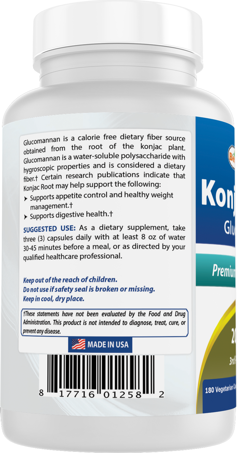 {"id":4527345500297,"title":"Best Naturals Konjac Root Glucomannan 2000 mg 180 Vegetarian Capsules","handle":"best-naturals-konjac-glucomanan-root-2000-mg-per-serving-180-vcaps","description":"\u003cul\u003e\n\u003cli style=\"font-weight: 400;\"\u003e\u003cspan style=\"font-weight: 400;\"\u003e3rd Party Lab Tested for Purity \u0026amp; Quality.\u003c\/span\u003e\u003c\/li\u003e\n\u003cli style=\"font-weight: 400;\"\u003e\u003cspan style=\"font-weight: 400;\"\u003e2000 mg of Konjac Root Glucomannan per Serving - 60 Servings per Bottle.\u003c\/span\u003e\u003c\/li\u003e\n\u003cli style=\"font-weight: 400;\"\u003e\u003cspan style=\"font-weight: 400;\"\u003eNon-GMO \u0026amp; Gluten-Free.\u003c\/span\u003e\u003c\/li\u003e\n\u003cli style=\"font-weight: 400;\"\u003e\u003cspan style=\"font-weight: 400;\"\u003eProudly Made in USA, GMP Compliant, FDA Registered Facility.\u003c\/span\u003e\u003c\/li\u003e\n\u003cli style=\"font-weight: 400;\"\u003e\u003cspan style=\"font-weight: 400;\"\u003eNo Artificial Color, Flavor, or Sweetener, No Preservatives, No Sugar, No Milk, No Corn, No Soy, No Egg, No Lactose, No Gluten, No Wheat, No Yeast, No Fish. Sodium Free.\u003c\/span\u003e\u003c\/li\u003e\n\u003c\/ul\u003e","published_at":"2020-02-03T07:19:30-05:00","created_at":"2020-02-03T08:45:19-05:00","vendor":"shopbestnaturals.com","type":"","tags":["Herbal Products"],"price":1099,"price_min":1099,"price_max":1099,"available":true,"price_varies":false,"compare_at_price":2199,"compare_at_price_min":2199,"compare_at_price_max":2199,"compare_at_price_varies":false,"variants":[{"id":32074708877449,"title":"Default Title","option1":"Default Title","option2":null,"option3":null,"sku":"817716012582","requires_shipping":true,"taxable":false,"featured_image":null,"available":true,"name":"Best Naturals Konjac Root Glucomannan 2000 mg 180 Vegetarian Capsules","public_title":null,"options":["Default Title"],"price":1099,"weight":204,"compare_at_price":2199,"inventory_management":"shopify","barcode":"817716012582","requires_selling_plan":false,"selling_plan_allocations":[]}],"images":["\/\/shopbestnaturals.com\/cdn\/shop\/products\/Image-1_48242521-4e3c-4b32-b461-9685f8ad1466.jpg?v=1749675876","\/\/shopbestnaturals.com\/cdn\/shop\/files\/Image-4_40b9204f-8ea5-42d2-b3ee-369c1d91f793.jpg?v=1758568394","\/\/shopbestnaturals.com\/cdn\/shop\/files\/Image-5_47e87cf2-11a1-40e4-bc38-c1129b23e945.jpg?v=1758568395","\/\/shopbestnaturals.com\/cdn\/shop\/files\/Image-6_dd680088-c271-405a-a242-543485195cd7.jpg?v=1758568395","\/\/shopbestnaturals.com\/cdn\/shop\/files\/Image-7_7a661fe9-650d-4b5a-9812-be53b77af0c8.jpg?v=1758568395","\/\/shopbestnaturals.com\/cdn\/shop\/files\/Image-2_1adc0e59-5b75-4c24-9e0d-d28cae6207d6.png?v=1758568394","\/\/shopbestnaturals.com\/cdn\/shop\/files\/Image-3_17067b15-931e-4c42-ab25-daf60a858743.png?v=1758568395"],"featured_image":"\/\/shopbestnaturals.com\/cdn\/shop\/products\/Image-1_48242521-4e3c-4b32-b461-9685f8ad1466.jpg?v=1749675876","options":["Title"],"media":[{"alt":"Best Naturals Konjac Glucomanan Root 2000 mg 180 Vegetarian Capsules - shopbestnaturals.com","id":23087383150753,"position":1,"preview_image":{"aspect_ratio":0.515,"height":2585,"width":1330,"src":"\/\/shopbestnaturals.com\/cdn\/shop\/products\/Image-1_48242521-4e3c-4b32-b461-9685f8ad1466.jpg?v=1749675876"},"aspect_ratio":0.515,"height":2585,"media_type":"image","src":"\/\/shopbestnaturals.com\/cdn\/shop\/products\/Image-1_48242521-4e3c-4b32-b461-9685f8ad1466.jpg?v=1749675876","width":1330},{"alt":null,"id":37766443204825,"position":2,"preview_image":{"aspect_ratio":1.0,"height":1500,"width":1500,"src":"\/\/shopbestnaturals.com\/cdn\/shop\/files\/Image-4_40b9204f-8ea5-42d2-b3ee-369c1d91f793.jpg?v=1758568394"},"aspect_ratio":1.0,"height":1500,"media_type":"image","src":"\/\/shopbestnaturals.com\/cdn\/shop\/files\/Image-4_40b9204f-8ea5-42d2-b3ee-369c1d91f793.jpg?v=1758568394","width":1500},{"alt":null,"id":37766443237593,"position":3,"preview_image":{"aspect_ratio":1.0,"height":1500,"width":1500,"src":"\/\/shopbestnaturals.com\/cdn\/shop\/files\/Image-5_47e87cf2-11a1-40e4-bc38-c1129b23e945.jpg?v=1758568395"},"aspect_ratio":1.0,"height":1500,"media_type":"image","src":"\/\/shopbestnaturals.com\/cdn\/shop\/files\/Image-5_47e87cf2-11a1-40e4-bc38-c1129b23e945.jpg?v=1758568395","width":1500},{"alt":null,"id":37766443270361,"position":4,"preview_image":{"aspect_ratio":1.0,"height":1500,"width":1500,"src":"\/\/shopbestnaturals.com\/cdn\/shop\/files\/Image-6_dd680088-c271-405a-a242-543485195cd7.jpg?v=1758568395"},"aspect_ratio":1.0,"height":1500,"media_type":"image","src":"\/\/shopbestnaturals.com\/cdn\/shop\/files\/Image-6_dd680088-c271-405a-a242-543485195cd7.jpg?v=1758568395","width":1500},{"alt":null,"id":37766443303129,"position":5,"preview_image":{"aspect_ratio":1.0,"height":1500,"width":1500,"src":"\/\/shopbestnaturals.com\/cdn\/shop\/files\/Image-7_7a661fe9-650d-4b5a-9812-be53b77af0c8.jpg?v=1758568395"},"aspect_ratio":1.0,"height":1500,"media_type":"image","src":"\/\/shopbestnaturals.com\/cdn\/shop\/files\/Image-7_7a661fe9-650d-4b5a-9812-be53b77af0c8.jpg?v=1758568395","width":1500},{"alt":null,"id":37766443335897,"position":6,"preview_image":{"aspect_ratio":0.523,"height":1500,"width":785,"src":"\/\/shopbestnaturals.com\/cdn\/shop\/files\/Image-2_1adc0e59-5b75-4c24-9e0d-d28cae6207d6.png?v=1758568394"},"aspect_ratio":0.523,"height":1500,"media_type":"image","src":"\/\/shopbestnaturals.com\/cdn\/shop\/files\/Image-2_1adc0e59-5b75-4c24-9e0d-d28cae6207d6.png?v=1758568394","width":785},{"alt":null,"id":37766443368665,"position":7,"preview_image":{"aspect_ratio":0.523,"height":1500,"width":785,"src":"\/\/shopbestnaturals.com\/cdn\/shop\/files\/Image-3_17067b15-931e-4c42-ab25-daf60a858743.png?v=1758568395"},"aspect_ratio":0.523,"height":1500,"media_type":"image","src":"\/\/shopbestnaturals.com\/cdn\/shop\/files\/Image-3_17067b15-931e-4c42-ab25-daf60a858743.png?v=1758568395","width":785}],"requires_selling_plan":false,"selling_plan_groups":[
