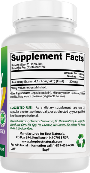 {"id":4510847402121,"title":"Best Naturals Acai Berry Extract 600 mg 120 Capsuels","handle":"best-naturals-acai-berry-extract-600-mg-120-capsuels","description":"\u003cul class=\"a-unordered-list a-vertical a-spacing-none\"\u003e\n\u003cli style=\"font-weight: 400;\"\u003e\u003cspan style=\"font-weight: 400;\"\u003e3rd Party Lab Tested for Purity \u0026amp; Quality.\u003c\/span\u003e\u003c\/li\u003e\n\u003cli style=\"font-weight: 400;\"\u003e\u003cspan style=\"font-weight: 400;\"\u003e600 mg of Acai Berry per Serving - 120 Capsules per Bottle.\u003c\/span\u003e\u003c\/li\u003e\n\u003cli style=\"font-weight: 400;\"\u003e\u003cspan style=\"font-weight: 400;\"\u003eNon-GMO \u0026amp; Gluten Free.\u003c\/span\u003e\u003c\/li\u003e\n\u003cli style=\"font-weight: 400;\"\u003e\u003cspan style=\"font-weight: 400;\"\u003eProudly Made in USA, GMP Compliant, FDA Registered Facility.\u003c\/span\u003e\u003c\/li\u003e\n\u003cli style=\"font-weight: 400;\"\u003e\u003cspan style=\"font-weight: 400;\"\u003eNo Artificial Color, Flavor or Sweetener, No Preservatives, No Sugar, No Milk, No Corn, No Soy, No Egg, No Lactose, No Gluten, No Wheat, No Yeast, No Fish. Sodium Free.\u003c\/span\u003e\u003c\/li\u003e\n\u003c\/ul\u003e","published_at":"2020-01-26T01:45:32-05:00","created_at":"2020-01-26T02:15:36-05:00","vendor":"shopbestnaturals.com","type":"","tags":["Herbal Products"],"price":1679,"price_min":1679,"price_max":1679,"available":true,"price_varies":false,"compare_at_price":3149,"compare_at_price_min":3149,"compare_at_price_max":3149,"compare_at_price_varies":false,"variants":[{"id":31971102982281,"title":"Default Title","option1":"Default Title","option2":null,"option3":null,"sku":"817716012612","requires_shipping":true,"taxable":false,"featured_image":null,"available":true,"name":"Best Naturals Acai Berry Extract 600 mg 120 Capsuels","public_title":null,"options":["Default Title"],"price":1679,"weight":132,"compare_at_price":3149,"inventory_management":"shopify","barcode":"817716012612","requires_selling_plan":false,"selling_plan_allocations":[]}],"images":["\/\/shopbestnaturals.com\/cdn\/shop\/products\/Image-1_ce1d6dd5-54ad-4996-9d42-8c9ec0d115fb.jpg?v=1749674945","\/\/shopbestnaturals.com\/cdn\/shop\/files\/Image-4_fa4e8daa-4052-4865-92d1-0d2823469113.jpg?v=1756475721","\/\/shopbestnaturals.com\/cdn\/shop\/files\/Image-5_83eb8bb3-c189-439a-8c8c-90221f513b5c.jpg?v=1756475721","\/\/shopbestnaturals.com\/cdn\/shop\/files\/Image-6_83ffd8bf-4b95-4a53-a9dd-5a073757b790.jpg?v=1756475721","\/\/shopbestnaturals.com\/cdn\/shop\/files\/Image-7_65fe643e-7277-408e-8210-4efa44cbe008.jpg?v=1756475721","\/\/shopbestnaturals.com\/cdn\/shop\/files\/Image-2_30edd245-c285-4e68-82dc-fbff6fd052e9.png?v=1756475721","\/\/shopbestnaturals.com\/cdn\/shop\/files\/Image-3_72cba340-efed-49c2-a78c-c6eded703067.png?v=1756475721"],"featured_image":"\/\/shopbestnaturals.com\/cdn\/shop\/products\/Image-1_ce1d6dd5-54ad-4996-9d42-8c9ec0d115fb.jpg?v=1749674945","options":["Title"],"media":[{"alt":"Best Naturals Acai Berry Extract 600 mg 120 Capsuels - shopbestnaturals.com","id":23085359792289,"position":1,"preview_image":{"aspect_ratio":0.525,"height":2574,"width":1351,"src":"\/\/shopbestnaturals.com\/cdn\/shop\/products\/Image-1_ce1d6dd5-54ad-4996-9d42-8c9ec0d115fb.jpg?v=1749674945"},"aspect_ratio":0.525,"height":2574,"media_type":"image","src":"\/\/shopbestnaturals.com\/cdn\/shop\/products\/Image-1_ce1d6dd5-54ad-4996-9d42-8c9ec0d115fb.jpg?v=1749674945","width":1351},{"alt":null,"id":37677462716633,"position":2,"preview_image":{"aspect_ratio":1.0,"height":1500,"width":1500,"src":"\/\/shopbestnaturals.com\/cdn\/shop\/files\/Image-4_fa4e8daa-4052-4865-92d1-0d2823469113.jpg?v=1756475721"},"aspect_ratio":1.0,"height":1500,"media_type":"image","src":"\/\/shopbestnaturals.com\/cdn\/shop\/files\/Image-4_fa4e8daa-4052-4865-92d1-0d2823469113.jpg?v=1756475721","width":1500},{"alt":null,"id":37677462749401,"position":3,"preview_image":{"aspect_ratio":1.0,"height":1500,"width":1500,"src":"\/\/shopbestnaturals.com\/cdn\/shop\/files\/Image-5_83eb8bb3-c189-439a-8c8c-90221f513b5c.jpg?v=1756475721"},"aspect_ratio":1.0,"height":1500,"media_type":"image","src":"\/\/shopbestnaturals.com\/cdn\/shop\/files\/Image-5_83eb8bb3-c189-439a-8c8c-90221f513b5c.jpg?v=1756475721","width":1500},{"alt":null,"id":37677462782169,"position":4,"preview_image":{"aspect_ratio":1.0,"height":1500,"width":1500,"src":"\/\/shopbestnaturals.com\/cdn\/shop\/files\/Image-6_83ffd8bf-4b95-4a53-a9dd-5a073757b790.jpg?v=1756475721"},"aspect_ratio":1.0,"height":1500,"media_type":"image","src":"\/\/shopbestnaturals.com\/cdn\/shop\/files\/Image-6_83ffd8bf-4b95-4a53-a9dd-5a073757b790.jpg?v=1756475721","width":1500},{"alt":null,"id":37677462814937,"position":5,"preview_image":{"aspect_ratio":1.0,"height":1500,"width":1500,"src":"\/\/shopbestnaturals.com\/cdn\/shop\/files\/Image-7_65fe643e-7277-408e-8210-4efa44cbe008.jpg?v=1756475721"},"aspect_ratio":1.0,"height":1500,"media_type":"image","src":"\/\/shopbestnaturals.com\/cdn\/shop\/files\/Image-7_65fe643e-7277-408e-8210-4efa44cbe008.jpg?v=1756475721","width":1500},{"alt":null,"id":37677462847705,"position":6,"preview_image":{"aspect_ratio":0.523,"height":1500,"width":785,"src":"\/\/shopbestnaturals.com\/cdn\/shop\/files\/Image-2_30edd245-c285-4e68-82dc-fbff6fd052e9.png?v=1756475721"},"aspect_ratio":0.523,"height":1500,"media_type":"image","src":"\/\/shopbestnaturals.com\/cdn\/shop\/files\/Image-2_30edd245-c285-4e68-82dc-fbff6fd052e9.png?v=1756475721","width":785},{"alt":null,"id":37677462880473,"position":7,"preview_image":{"aspect_ratio":0.523,"height":1500,"width":785,"src":"\/\/shopbestnaturals.com\/cdn\/shop\/files\/Image-3_72cba340-efed-49c2-a78c-c6eded703067.png?v=1756475721"},"aspect_ratio":0.523,"height":1500,"media_type":"image","src":"\/\/shopbestnaturals.com\/cdn\/shop\/files\/Image-3_72cba340-efed-49c2-a78c-c6eded703067.png?v=1756475721","width":785}],"requires_selling_plan":false,"selling_plan_groups":[],"content":"\u003cul cla