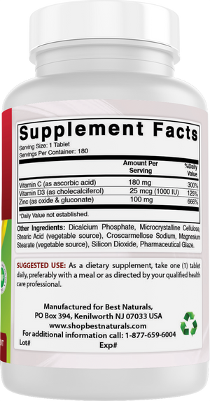 {"id":8947777274073,"title":"Best Naturals Zinc 100 mg with Vitamin C \u0026 D3 180 Tablets Gluten Free and Non-GMO","handle":"best-naturals-zinc-100-mg-with-vitamin-c-d3-180-tablets-gluten-free-and-non-gmo","description":"\u003cul class=\"a-unordered-list a-vertical a-spacing-mini\"\u003e\n\u003cli class=\"a-spacing-mini\"\u003e\u003cspan class=\"a-list-item\"\u003e3rd Party Lab Tested for Purity \u0026amp; Quality.\u003c\/span\u003e\u003c\/li\u003e\n\u003cli class=\"a-spacing-mini\"\u003e\u003cspan class=\"a-list-item\"\u003e100 mg of Zinc, 25 mg of Vitamin D3, and 180 mg of Vitamin C per Serving- 180 Tablets\u003c\/span\u003e\u003c\/li\u003e\n\u003cli class=\"a-spacing-mini\"\u003e\u003cspan class=\"a-list-item\"\u003eNon-GMO \u0026amp; Gluten-Free.\u003c\/span\u003e\u003c\/li\u003e\n\u003cli class=\"a-spacing-mini\"\u003e\u003cspan class=\"a-list-item\"\u003eProudly Made in USA, GMP Compliant, FDA Registered Facility.\u003c\/span\u003e\u003c\/li\u003e\n\u003cli class=\"a-spacing-mini\"\u003e\u003cspan class=\"a-list-item\"\u003eNo Artificial Color, Flavor, or Sweetener, No Preservatives, No Sugar, No Milk, No Corn, No Soy, No Egg, No Lactose, No Gluten, No Wheat, No Yeast, No Fish. Sodium Free.\u003c\/span\u003e\u003c\/li\u003e\n\u003c\/ul\u003e\n\u003c!----\u003e","published_at":"2024-07-23T14:29:46-04:00","created_at":"2024-07-23T14:29:46-04:00","vendor":"shopbestnaturals.com","type":"","tags":[],"price":1049,"price_min":1049,"price_max":1049,"available":true,"price_varies":false,"compare_at_price":2099,"compare_at_price_min":2099,"compare_at_price_max":2099,"compare_at_price_varies":false,"variants":[{"id":45726466015449,"title":"Default Title","option1":"Default Title","option2":null,"option3":null,"sku":"817716019871","requires_shipping":true,"taxable":true,"featured_image":null,"available":true,"name":"Best Naturals Zinc 100 mg with Vitamin C \u0026 D3 180 Tablets Gluten Free and Non-GMO","public_title":null,"options":["Default Title"],"price":1049,"weight":159,"compare_at_price":2099,"inventory_management":"shopify","barcode":"817716019871","requires_selling_plan":false,"selling_plan_allocations":[]}],"images":["\/\/shopbestnaturals.com\/cdn\/shop\/files\/Image-1_95f98e96-7de8-4951-a8a8-c4e95a2b20a7.jpg?v=1749677924","\/\/shopbestnaturals.com\/cdn\/shop\/files\/Image-4_d0fe5918-4435-4cbf-9ef8-85a3ea67fc3a.png?v=1758572067","\/\/shopbestnaturals.com\/cdn\/shop\/files\/Image-5_8f4f51f8-c487-46eb-9109-b44bb9105680.png?v=1758572067","\/\/shopbestnaturals.com\/cdn\/shop\/files\/Image-6_c9929ad1-7e28-4fd4-bb0f-6b547c30b391.jpg?v=1758572067","\/\/shopbestnaturals.com\/cdn\/shop\/files\/Image-7_4134ea64-8dc9-4db7-8ae0-fc2b9803e1f6.jpg?v=1758572066","\/\/shopbestnaturals.com\/cdn\/shop\/files\/Image-2_52f07dcf-ac13-47cb-88cd-3ec4bd847ae5.png?v=1758572067","\/\/shopbestnaturals.com\/cdn\/shop\/files\/Image-3_ee8ae671-622c-41c1-bf5e-c7c1cb3d1d99.png?v=1758572066"],"featured_image":"\/\/shopbestnaturals.com\/cdn\/shop\/files\/Image-1_95f98e96-7de8-4951-a8a8-c4e95a2b20a7.jpg?v=1749677924","options":["Title"],"media":[{"alt":null,"id":35501093585113,"position":1,"preview_image":{"aspect_ratio":0.523,"height":2541,"width":1330,"src":"\/\/shopbestnaturals.com\/cdn\/shop\/files\/Image-1_95f98e96-7de8-4951-a8a8-c4e95a2b20a7.jpg?v=1749677924"},"aspect_ratio":0.523,"height":2541,"media_type":"image","src":"\/\/shopbestnaturals.com\/cdn\/shop\/files\/Image-1_95f98e96-7de8-4951-a8a8-c4e95a2b20a7.jpg?v=1749677924","width":1330},{"alt":null,"id":37766675300569,"position":2,"preview_image":{"aspect_ratio":1.0,"height":1500,"width":1500,"src":"\/\/shopbestnaturals.com\/cdn\/shop\/files\/Image-4_d0fe5918-4435-4cbf-9ef8-85a3ea67fc3a.png?v=1758572067"},"aspect_ratio":1.0,"height":1500,"media_type":"image","src":"\/\/shopbestnaturals.com\/cdn\/shop\/files\/Image-4_d0fe5918-4435-4cbf-9ef8-85a3ea67fc3a.png?v=1758572067","width":1500},{"alt":null,"id":37766675398873,"position":3,"preview_image":{"aspect_ratio":1.0,"height":1500,"width":1500,"src":"\/\/shopbestnaturals.com\/cdn\/shop\/files\/Image-5_8f4f51f8-c487-46eb-9109-b44bb9105680.png?v=1758572067"},"aspect_ratio":1.0,"height":1500,"media_type":"image","src":"\/\/shopbestnaturals.com\/cdn\/shop\/files\/Image-5_8f4f51f8-c487-46eb-9109-b44bb9105680.png?v=1758572067","width":1500},{"alt":null,"id":37766675431641,"position":4,"preview_image":{"aspect_ratio":1.0,"height":1500,"width":1500,"src":"\/\/shopbestnaturals.com\/cdn\/shop\/files\/Image-6_c9929ad1-7e28-4fd4-bb0f-6b547c30b391.jpg?v=1758572067"},"aspect_ratio":1.0,"height":1500,"media_type":"image","src":"\/\/shopbestnaturals.com\/cdn\/shop\/files\/Image-6_c9929ad1-7e28-4fd4-bb0f-6b547c30b391.jpg?v=1758572067","width":1500},{"alt":null,"id":37766675464409,"position":5,"preview_image":{"aspect_ratio":1.0,"height":1500,"width":1500,"src":"\/\/shopbestnaturals.com\/cdn\/shop\/files\/Image-7_4134ea64-8dc9-4db7-8ae0-fc2b9803e1f6.jpg?v=1758572066"},"aspect_ratio":1.0,"height":1500,"media_type":"image","src":"\/\/shopbestnaturals.com\/cdn\/shop\/files\/Image-7_4134ea64-8dc9-4db7-8ae0-fc2b9803e1f6.jpg?v=1758572066","width":1500},{"alt":null,"id":37766675497177,"position":6,"preview_image":{"aspect_ratio":0.523,"height":1500,"width":785,"src":"\/\/shopbestnaturals.com\/cdn\/shop\/files\/Image-2_52f07dcf-ac13-47cb-88cd-3ec4bd847ae5.png?v=1758572067"},"aspect_ratio":0.523,"height":1500,"media_type":"image","src":"\/\/shopbestnaturals.com\/cdn\/shop\/files\/Image-2_52f07dcf-ac13-47cb-88cd-3ec4bd847ae5.png?v=1758572067","width":785},{"alt":null,"id":37766675595481,"position":7,"preview_image":{"aspect_ratio":0.523,"height":1500,"width":785,"src":"\/\/shopbestnaturals.com\/cdn\/shop\/files\/Image-3_ee8ae671-622c-41c1-bf5e-c7c1cb3d1d99.png?v=1758572066"},"aspect_ratio":0.523,"height":1500,"media_type":"image","src":"\/\/shopbestnaturals.com\/cdn\/shop\/files\/Image-3_ee8ae671-622c-41c1-bf5e-c7c1cb3d1d99.png?v=1758572066","width":785}],"requires_selling_plan":false,"selling_plan_groups":[],"content":"\u003cul class=\"a-
