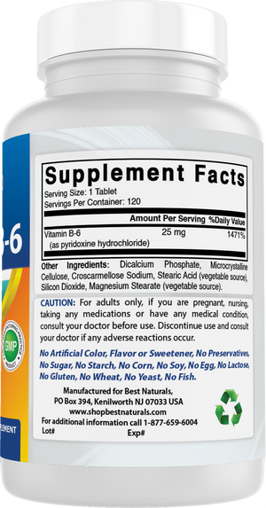 {"id":6888611905697,"title":"Best Naturals Vitamin B6 25mg 120 Tablets","handle":"best-naturals-vitamin-b6-25mg-120-tablets","description":"\u003cul data-mce-fragment=\"1\" class=\"a-unordered-list a-vertical a-spacing-mini\"\u003e\n\u003cli\u003e\u003cspan\u003e3rd Party Lab Tested for Purity \u0026amp; Quality.\u003c\/span\u003e\u003c\/li\u003e\n\u003cli\u003e\n\u003cspan\u003e25 mg of\u003cspan\u003e \u003c\/span\u003e\u003c\/span\u003e\u003cspan\u003eVitamin B-6\u003cspan\u003e \u003c\/span\u003e\u003c\/span\u003e\u003cspan\u003eper Tablet - 120 Tablets per Bottle.\u003c\/span\u003e\n\u003c\/li\u003e\n\u003cli\u003e\u003cspan\u003eNon-GMO \u0026amp; Gluten-Free.\u003c\/span\u003e\u003c\/li\u003e\n\u003cli\u003e\u003cspan\u003eProudly Made in the USA, GMP Compliant, FDA Registered Facility.\u003c\/span\u003e\u003c\/li\u003e\n\u003cli\u003e\u003cspan\u003eNo Artificial Color, Flavor, or Sweetener, No Preservatives, No Sugar, No Milk, No Corn, No Soy, No Egg, No Lactose, No Gluten, No Wheat, No Yeast, No Fish. Sodium Free.\u003c\/span\u003e\u003c\/li\u003e\n\u003c\/ul\u003e","published_at":"2021-07-28T10:23:37-04:00","created_at":"2021-07-28T10:23:36-04:00","vendor":"shopbestnaturals.com","type":"","tags":["Supplements"],"price":599,"price_min":599,"price_max":599,"available":true,"price_varies":false,"compare_at_price":1299,"compare_at_price_min":1299,"compare_at_price_max":1299,"compare_at_price_varies":false,"variants":[{"id":40466533712033,"title":"Default Title","option1":"Default Title","option2":null,"option3":null,"sku":"817716015736","requires_shipping":true,"taxable":false,"featured_image":null,"available":true,"name":"Best Naturals Vitamin B6 25mg 120 Tablets","public_title":null,"options":["Default Title"],"price":599,"weight":54,"compare_at_price":1299,"inventory_management":"shopify","barcode":"817716015736","requires_selling_plan":false,"selling_plan_allocations":[]}],"images":["\/\/shopbestnaturals.com\/cdn\/shop\/products\/Image-1_0a6d7133-04c0-4fdf-8835-4a7ce09a0640.jpg?v=1749677526","\/\/shopbestnaturals.com\/cdn\/shop\/files\/Image-4_ca5be699-7b3a-47bc-aa7d-bce7843e17b9.jpg?v=1756477901","\/\/shopbestnaturals.com\/cdn\/shop\/files\/Image-5_545238de-44eb-4ac8-bd58-6963e3394d81.jpg?v=1756477901","\/\/shopbestnaturals.com\/cdn\/shop\/files\/Image-6_ca35a457-7d41-4c5a-8277-2d74710e7b04.jpg?v=1756477901","\/\/shopbestnaturals.com\/cdn\/shop\/files\/Image-7_47519187-f878-490c-9ad8-2da437db5f9a.jpg?v=1756477901","\/\/shopbestnaturals.com\/cdn\/shop\/files\/Image-2_cf69139a-8333-41d8-944d-b7c756d9f58e.png?v=1756477901","\/\/shopbestnaturals.com\/cdn\/shop\/files\/Image-3_e6fb6865-00e1-4ca4-89b4-1e3c1cdd164c.png?v=1756477901"],"featured_image":"\/\/shopbestnaturals.com\/cdn\/shop\/products\/Image-1_0a6d7133-04c0-4fdf-8835-4a7ce09a0640.jpg?v=1749677526","options":["Title"],"media":[{"alt":"Best Naturals Vitamin B6 25mg, 120 Tablets - shopbestnaturals.com","id":22836369686689,"position":1,"preview_image":{"aspect_ratio":0.525,"height":2574,"width":1351,"src":"\/\/shopbestnaturals.com\/cdn\/shop\/products\/Image-1_0a6d7133-04c0-4fdf-8835-4a7ce09a0640.jpg?v=1749677526"},"aspect_ratio":0.525,"height":2574,"media_type":"image","src":"\/\/shopbestnaturals.com\/cdn\/shop\/products\/Image-1_0a6d7133-04c0-4fdf-8835-4a7ce09a0640.jpg?v=1749677526","width":1351},{"alt":null,"id":37677499154649,"position":2,"preview_image":{"aspect_ratio":1.0,"height":1500,"width":1500,"src":"\/\/shopbestnaturals.com\/cdn\/shop\/files\/Image-4_ca5be699-7b3a-47bc-aa7d-bce7843e17b9.jpg?v=1756477901"},"aspect_ratio":1.0,"height":1500,"media_type":"image","src":"\/\/shopbestnaturals.com\/cdn\/shop\/files\/Image-4_ca5be699-7b3a-47bc-aa7d-bce7843e17b9.jpg?v=1756477901","width":1500},{"alt":null,"id":37677499187417,"position":3,"preview_image":{"aspect_ratio":1.0,"height":1500,"width":1500,"src":"\/\/shopbestnaturals.com\/cdn\/shop\/files\/Image-5_545238de-44eb-4ac8-bd58-6963e3394d81.jpg?v=1756477901"},"aspect_ratio":1.0,"height":1500,"media_type":"image","src":"\/\/shopbestnaturals.com\/cdn\/shop\/files\/Image-5_545238de-44eb-4ac8-bd58-6963e3394d81.jpg?v=1756477901","width":1500},{"alt":null,"id":37677499220185,"position":4,"preview_image":{"aspect_ratio":1.0,"height":1500,"width":1500,"src":"\/\/shopbestnaturals.com\/cdn\/shop\/files\/Image-6_ca35a457-7d41-4c5a-8277-2d74710e7b04.jpg?v=1756477901"},"aspect_ratio":1.0,"height":1500,"media_type":"image","src":"\/\/shopbestnaturals.com\/cdn\/shop\/files\/Image-6_ca35a457-7d41-4c5a-8277-2d74710e7b04.jpg?v=1756477901","width":1500},{"alt":null,"id":37677499252953,"position":5,"preview_image":{"aspect_ratio":1.0,"height":1500,"width":1500,"src":"\/\/shopbestnaturals.com\/cdn\/shop\/files\/Image-7_47519187-f878-490c-9ad8-2da437db5f9a.jpg?v=1756477901"},"aspect_ratio":1.0,"height":1500,"media_type":"image","src":"\/\/shopbestnaturals.com\/cdn\/shop\/files\/Image-7_47519187-f878-490c-9ad8-2da437db5f9a.jpg?v=1756477901","width":1500},{"alt":null,"id":37677499285721,"position":6,"preview_image":{"aspect_ratio":0.523,"height":1500,"width":785,"src":"\/\/shopbestnaturals.com\/cdn\/shop\/files\/Image-2_cf69139a-8333-41d8-944d-b7c756d9f58e.png?v=1756477901"},"aspect_ratio":0.523,"height":1500,"media_type":"image","src":"\/\/shopbestnaturals.com\/cdn\/shop\/files\/Image-2_cf69139a-8333-41d8-944d-b7c756d9f58e.png?v=1756477901","width":785},{"alt":null,"id":37677499318489,"position":7,"preview_image":{"aspect_ratio":0.523,"height":1500,"width":785,"src":"\/\/shopbestnaturals.com\/cdn\/shop\/files\/Image-3_e6fb6865-00e1-4ca4-89b4-1e3c1cdd164c.png?v=1756477901"},"aspect_ratio":0.523,"height":1500,"media_type":"image","src":"\/\/shopbestnaturals.com\/cdn\/shop\/files\/Image-3_e6fb6865-00e1-4ca4-89b4-1e3c1cdd164c.png?v=1756477901","width":785}],"requires_selling_plan":false,"selling_plan_groups":[],"content":"\u003cul data-mce-fragment=\"1\" class=\"a-unordered-list a-vertical a-spacing-mini\"\u003e\n\u003cli\u003e\u003cspan\u003e3rd Party Lab Tested for Purity \u0026amp; Quality.\u0
