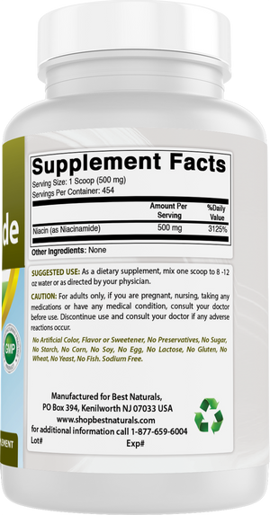 {"id":6886664208545,"title":"Best Naturals Niacinamide (Vitamin B3) Pure Powder 8 OZ","handle":"best-naturals-niacinamide-vitamin-b3-pure-powder-8-oz","description":"\u003cul data-mce-fragment=\"1\"\u003e\n\u003cli data-mce-fragment=\"1\" style=\"font-weight: 400;\" data-mce-style=\"font-weight: 400;\"\u003e\u003cspan data-mce-fragment=\"1\" style=\"font-weight: 400;\" data-mce-style=\"font-weight: 400;\"\u003e3rd Party Lab Tested for Purity \u0026amp; Quality.\u003c\/span\u003e\u003c\/li\u003e\n\u003cli data-mce-fragment=\"1\" style=\"font-weight: 400;\" data-mce-style=\"font-weight: 400;\"\u003e\n\u003cspan data-mce-fragment=\"1\" style=\"font-weight: 400;\" data-mce-style=\"font-weight: 400;\"\u003e1 Scoop of Niacinamide per Serving - 454 Servings per bottle\u003c\/span\u003e\u003cspan data-mce-fragment=\"1\" style=\"font-weight: 400;\" data-mce-style=\"font-weight: 400;\"\u003e.\u003c\/span\u003e\n\u003c\/li\u003e\n\u003cli data-mce-fragment=\"1\" style=\"font-weight: 400;\" data-mce-style=\"font-weight: 400;\"\u003e\u003cspan data-mce-fragment=\"1\" style=\"font-weight: 400;\" data-mce-style=\"font-weight: 400;\"\u003eNon-GMO \u0026amp; Gluten-Free.\u003c\/span\u003e\u003c\/li\u003e\n\u003cli data-mce-fragment=\"1\" style=\"font-weight: 400;\" data-mce-style=\"font-weight: 400;\"\u003e\u003cspan data-mce-fragment=\"1\" style=\"font-weight: 400;\" data-mce-style=\"font-weight: 400;\"\u003eProudly Made in USA, GMP Compliant, FDA Registered Facility.\u003c\/span\u003e\u003c\/li\u003e\n\u003cli data-mce-fragment=\"1\" style=\"font-weight: 400;\" data-mce-style=\"font-weight: 400;\"\u003e\u003cspan data-mce-fragment=\"1\" style=\"font-weight: 400;\" data-mce-style=\"font-weight: 400;\"\u003eNo Artificial Color, Flavor, or Sweetener, No Preservatives, No Sugar, No Milk, No Corn, No Soy, No Egg, No Lactose, No Gluten, No Wheat, No Yeast, No Fish. Sodium Free.\u003c\/span\u003e\u003c\/li\u003e\n\u003c\/ul\u003e","published_at":"2021-07-27T14:54:36-04:00","created_at":"2021-07-27T14:54:35-04:00","vendor":"shopbestnaturals.com","type":"","tags":["Supplements"],"price":1049,"price_min":1049,"price_max":1049,"available":true,"price_varies":false,"compare_at_price":2624,"compare_at_price_min":2624,"compare_at_price_max":2624,"compare_at_price_varies":false,"variants":[{"id":40461002735777,"title":"Default Title","option1":"Default Title","option2":null,"option3":null,"sku":"817716018294","requires_shipping":true,"taxable":false,"featured_image":null,"available":true,"name":"Best Naturals Niacinamide (Vitamin B3) Pure Powder 8 OZ","public_title":null,"options":["Default Title"],"price":1049,"weight":227,"compare_at_price":2624,"inventory_management":"shopify","barcode":"817716018294","requires_selling_plan":false,"selling_plan_allocations":[]}],"images":["\/\/shopbestnaturals.com\/cdn\/shop\/files\/Image-1_21210977-9636-4fd4-9b85-1edcd0d380f3.png?v=1756142944","\/\/shopbestnaturals.com\/cdn\/shop\/files\/Image-4_ddb96d4c-3ae3-4272-a170-0f0eae066cdd.jpg?v=1756142952","\/\/shopbestnaturals.com\/cdn\/shop\/files\/Image-5_c4239a14-cc6b-4b26-a374-7ed789aa7a1e.jpg?v=1756142952","\/\/shopbestnaturals.com\/cdn\/shop\/files\/Image-6_e2ae78da-88d5-4501-9607-8730490dadec.jpg?v=1756142952","\/\/shopbestnaturals.com\/cdn\/shop\/files\/Image-7_75ce52dc-57a8-40e5-972a-f4159d26fb74.jpg?v=1756142952","\/\/shopbestnaturals.com\/cdn\/shop\/files\/Image-2_b0980825-b4f9-4352-bef2-7c86be503548.png?v=1756142952","\/\/shopbestnaturals.com\/cdn\/shop\/files\/Image-3_9742ea23-edda-45a1-b196-ffdcab57b408.png?v=1756142952"],"featured_image":"\/\/shopbestnaturals.com\/cdn\/shop\/files\/Image-1_21210977-9636-4fd4-9b85-1edcd0d380f3.png?v=1756142944","options":["Title"],"media":[{"alt":null,"id":37655823024345,"position":1,"preview_image":{"aspect_ratio":0.523,"height":1500,"width":785,"src":"\/\/shopbestnaturals.com\/cdn\/shop\/files\/Image-1_21210977-9636-4fd4-9b85-1edcd0d380f3.png?v=1756142944"},"aspect_ratio":0.523,"height":1500,"media_type":"image","src":"\/\/shopbestnaturals.com\/cdn\/shop\/files\/Image-1_21210977-9636-4fd4-9b85-1edcd0d380f3.png?v=1756142944","width":785},{"alt":null,"id":37655823122649,"position":2,"preview_image":{"aspect_ratio":1.0,"height":1500,"width":1500,"src":"\/\/shopbestnaturals.com\/cdn\/shop\/files\/Image-4_ddb96d4c-3ae3-4272-a170-0f0eae066cdd.jpg?v=1756142952"},"aspect_ratio":1.0,"height":1500,"media_type":"image","src":"\/\/shopbestnaturals.com\/cdn\/shop\/files\/Image-4_ddb96d4c-3ae3-4272-a170-0f0eae066cdd.jpg?v=1756142952","width":1500},{"alt":null,"id":37655823155417,"position":3,"preview_image":{"aspect_ratio":1.0,"height":1500,"width":1500,"src":"\/\/shopbestnaturals.com\/cdn\/shop\/files\/Image-5_c4239a14-cc6b-4b26-a374-7ed789aa7a1e.jpg?v=1756142952"},"aspect_ratio":1.0,"height":1500,"media_type":"image","src":"\/\/shopbestnaturals.com\/cdn\/shop\/files\/Image-5_c4239a14-cc6b-4b26-a374-7ed789aa7a1e.jpg?v=1756142952","width":1500},{"alt":null,"id":37655823188185,"position":4,"preview_image":{"aspect_ratio":1.0,"height":1500,"width":1500,"src":"\/\/shopbestnaturals.com\/cdn\/shop\/files\/Image-6_e2ae78da-88d5-4501-9607-8730490dadec.jpg?v=1756142952"},"aspect_ratio":1.0,"height":1500,"media_type":"image","src":"\/\/shopbestnaturals.com\/cdn\/shop\/files\/Image-6_e2ae78da-88d5-4501-9607-8730490dadec.jpg?v=1756142952","width":1500},{"alt":null,"id":37655823220953,"position":5,"preview_image":{"aspect_ratio":1.0,"height":1500,"width":1500,"src":"\/\/shopbestnaturals.com\/cdn\/shop\/files\/Image-7_75ce52dc-57a8-40e5-972a-f4159d26fb74.jpg?v=1756142952"},"aspect_ratio":1.0,"height":1500,"media_type":"image","src":"\/\/shopbestnaturals.com\/cdn\/shop\/files\/Image-7_75ce52dc-57a8-40e5-972a-f4159d26fb74.jpg?v=1756142952","width":1500},{"alt":null,"id":37655823057113,"position":6,"preview_image":{"aspect_ratio":0.523,"height":1500,"width":785,"src":"\/\/shopbestnaturals.com\/cdn\/shop\/files\/Image-2_b0980825-b4f9-4352-bef2-7c86be503548.png?v=1756142952"},"aspect_ratio":0.523,"height":1500,"media_