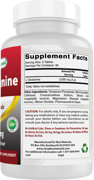 {"id":4644623155337,"title":"Best Naturals L-Glutamine 1000 mg 180 Tablets","handle":"best-naturals-l-glutamine-1000-mg-180-tablets","description":"\u003cul\u003e\n\u003cli style=\"font-weight: 400;\"\u003e\u003cspan style=\"font-weight: 400;\"\u003e3rd Party Lab Tested for Purity \u0026amp; Quality.\u003c\/span\u003e\u003c\/li\u003e\n\u003cli style=\"font-weight: 400;\"\u003e\u003cspan style=\"font-weight: 400;\"\u003e1000 mg of L-Glutamine per Tablet - 180 Tablets per Bottle.\u003c\/span\u003e\u003c\/li\u003e\n\u003cli style=\"font-weight: 400;\"\u003e\u003cspan style=\"font-weight: 400;\"\u003eNon-GMO \u0026amp; Gluten-Free.\u003c\/span\u003e\u003c\/li\u003e\n\u003cli style=\"font-weight: 400;\"\u003e\u003cspan style=\"font-weight: 400;\"\u003eProudly Made in USA, GMP Compliant, FDA Registered Facility.\u003c\/span\u003e\u003c\/li\u003e\n\u003cli style=\"font-weight: 400;\"\u003e\u003cspan style=\"font-weight: 400;\"\u003eNo Artificial Color, Flavor, or Sweetener, No Preservatives, No Sugar, No Milk, No Corn, No Soy, No Egg, No Lactose, No Gluten, No Wheat, No Yeast, No Fish. Sodium Free.\u003c\/span\u003e\u003c\/li\u003e\n\u003c\/ul\u003e","published_at":"2020-03-07T07:17:11-05:00","created_at":"2020-03-07T09:06:52-05:00","vendor":"shopbestnaturals.com","type":"","tags":["Supplements"],"price":1340,"price_min":1340,"price_max":1340,"available":false,"price_varies":false,"compare_at_price":null,"compare_at_price_min":0,"compare_at_price_max":0,"compare_at_price_varies":false,"variants":[{"id":32634562674825,"title":"Default Title","option1":"Default Title","option2":null,"option3":null,"sku":"817716014500","requires_shipping":true,"taxable":false,"featured_image":null,"available":false,"name":"Best Naturals L-Glutamine 1000 mg 180 Tablets","public_title":null,"options":["Default Title"],"price":1340,"weight":295,"compare_at_price":null,"inventory_management":"shopify","barcode":"","requires_selling_plan":false,"selling_plan_allocations":[]}],"images":["\/\/shopbestnaturals.com\/cdn\/shop\/products\/Image-1_15af5cbe-e3ce-4bf5-9b66-0972f6477bd5.jpg?v=1749676102","\/\/shopbestnaturals.com\/cdn\/shop\/files\/Image-4_bc88fb8d-a56c-4e73-a583-961420c41eec.png?v=1757013477","\/\/shopbestnaturals.com\/cdn\/shop\/files\/Image-5_a4bc9be7-7b97-4f1d-81cb-e73e2332b03b.png?v=1757013477","\/\/shopbestnaturals.com\/cdn\/shop\/files\/Image-6_e685d823-ea61-42d3-8833-6a049eddc3e0.jpg?v=1757013478","\/\/shopbestnaturals.com\/cdn\/shop\/files\/Image-7_7c4e5440-e85d-40a7-9a6b-05dc5a20f073.jpg?v=1757013477","\/\/shopbestnaturals.com\/cdn\/shop\/files\/Image-2_01c98f2d-dc9f-4657-820c-70723894a290.png?v=1757013477","\/\/shopbestnaturals.com\/cdn\/shop\/files\/Image-3_23d9a51e-ff48-45b5-9dc2-cb00d6dcf121.png?v=1757013477"],"featured_image":"\/\/shopbestnaturals.com\/cdn\/shop\/products\/Image-1_15af5cbe-e3ce-4bf5-9b66-0972f6477bd5.jpg?v=1749676102","options":["Title"],"media":[{"alt":"Best Naturals L-Glutamine 1000 mg 180 Tablets - shopbestnaturals.com","id":12135346077857,"position":1,"preview_image":{"aspect_ratio":0.525,"height":2574,"width":1351,"src":"\/\/shopbestnaturals.com\/cdn\/shop\/products\/Image-1_15af5cbe-e3ce-4bf5-9b66-0972f6477bd5.jpg?v=1749676102"},"aspect_ratio":0.525,"height":2574,"media_type":"image","src":"\/\/shopbestnaturals.com\/cdn\/shop\/products\/Image-1_15af5cbe-e3ce-4bf5-9b66-0972f6477bd5.jpg?v=1749676102","width":1351},{"alt":null,"id":37699215032537,"position":2,"preview_image":{"aspect_ratio":1.0,"height":1500,"width":1500,"src":"\/\/shopbestnaturals.com\/cdn\/shop\/files\/Image-4_bc88fb8d-a56c-4e73-a583-961420c41eec.png?v=1757013477"},"aspect_ratio":1.0,"height":1500,"media_type":"image","src":"\/\/shopbestnaturals.com\/cdn\/shop\/files\/Image-4_bc88fb8d-a56c-4e73-a583-961420c41eec.png?v=1757013477","width":1500},{"alt":null,"id":37699215065305,"position":3,"preview_image":{"aspect_ratio":1.0,"height":1500,"width":1500,"src":"\/\/shopbestnaturals.com\/cdn\/shop\/files\/Image-5_a4bc9be7-7b97-4f1d-81cb-e73e2332b03b.png?v=1757013477"},"aspect_ratio":1.0,"height":1500,"media_type":"image","src":"\/\/shopbestnaturals.com\/cdn\/shop\/files\/Image-5_a4bc9be7-7b97-4f1d-81cb-e73e2332b03b.png?v=1757013477","width":1500},{"alt":null,"id":37699215098073,"position":4,"preview_image":{"aspect_ratio":1.0,"height":1500,"width":1500,"src":"\/\/shopbestnaturals.com\/cdn\/shop\/files\/Image-6_e685d823-ea61-42d3-8833-6a049eddc3e0.jpg?v=1757013478"},"aspect_ratio":1.0,"height":1500,"media_type":"image","src":"\/\/shopbestnaturals.com\/cdn\/shop\/files\/Image-6_e685d823-ea61-42d3-8833-6a049eddc3e0.jpg?v=1757013478","width":1500},{"alt":null,"id":37699215130841,"position":5,"preview_image":{"aspect_ratio":1.0,"height":1500,"width":1500,"src":"\/\/shopbestnaturals.com\/cdn\/shop\/files\/Image-7_7c4e5440-e85d-40a7-9a6b-05dc5a20f073.jpg?v=1757013477"},"aspect_ratio":1.0,"height":1500,"media_type":"image","src":"\/\/shopbestnaturals.com\/cdn\/shop\/files\/Image-7_7c4e5440-e85d-40a7-9a6b-05dc5a20f073.jpg?v=1757013477","width":1500},{"alt":null,"id":37699215163609,"position":6,"preview_image":{"aspect_ratio":0.523,"height":1500,"width":785,"src":"\/\/shopbestnaturals.com\/cdn\/shop\/files\/Image-2_01c98f2d-dc9f-4657-820c-70723894a290.png?v=1757013477"},"aspect_ratio":0.523,"height":1500,"media_type":"image","src":"\/\/shopbestnaturals.com\/cdn\/shop\/files\/Image-2_01c98f2d-dc9f-4657-820c-70723894a290.png?v=1757013477","width":785},{"alt":null,"id":37699215196377,"position":7,"preview_image":{"aspect_ratio":0.523,"height":1500,"width":785,"src":"\/\/shopbestnaturals.com\/cdn\/shop\/files\/Image-3_23d9a51e-ff48-45b5-9dc2-cb00d6dcf121.png?v=1757013477"},"aspect_ratio":0.523,"height":1500,"media_type":"image","src":"\/\/shopbestnaturals.com\/cdn\/shop\/files\/Image-3_23d9a51e-ff48-45b5-9dc2-cb00d6dcf121.png?v=1757013477","width":785}],"requires_selling_plan":false,"selling_plan_groups":[],"content":"\u003cul\u003e\n\u003cli style=\"font-weight: 400;\"\u003e\u003cspan style=\"font-weight: 400;\"\u003e3rd Party 