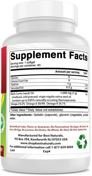 {"id":4512981713033,"title":"Best Naturals Black Seed Oil 1000 mg 60 Softgels","handle":"best-naturals-black-seed-oil-1000-mg-60-softgels","description":"\u003cul data-mce-fragment=\"1\"\u003e\n\u003cli style=\"font-weight: 400;\" data-mce-fragment=\"1\" data-mce-style=\"font-weight: 400;\"\u003e\u003cspan style=\"font-weight: 400;\" data-mce-fragment=\"1\" data-mce-style=\"font-weight: 400;\"\u003e3rd Party Lab Tested for Purity \u0026amp; Quality.\u003c\/span\u003e\u003c\/li\u003e\n\u003cli style=\"font-weight: 400;\" data-mce-fragment=\"1\" data-mce-style=\"font-weight: 400;\"\u003e\u003cspan style=\"font-weight: 400;\" data-mce-fragment=\"1\" data-mce-style=\"font-weight: 400;\"\u003e1000 mg of Black Seed Oil per Softgel - 60 Softgels per Bottle.\u003c\/span\u003e\u003c\/li\u003e\n\u003cli style=\"font-weight: 400;\" data-mce-fragment=\"1\" data-mce-style=\"font-weight: 400;\"\u003e\u003cspan style=\"font-weight: 400;\" data-mce-fragment=\"1\" data-mce-style=\"font-weight: 400;\"\u003eNon-GMO \u0026amp; Gluten Free.\u003c\/span\u003e\u003c\/li\u003e\n\u003cli style=\"font-weight: 400;\" data-mce-fragment=\"1\" data-mce-style=\"font-weight: 400;\"\u003e\u003cspan style=\"font-weight: 400;\" data-mce-fragment=\"1\" data-mce-style=\"font-weight: 400;\"\u003eProudly Made in USA, GMP Compliant, FDA Registered Facility.\u003c\/span\u003e\u003c\/li\u003e\n\u003cli style=\"font-weight: 400;\" data-mce-fragment=\"1\" data-mce-style=\"font-weight: 400;\"\u003e\u003cspan style=\"font-weight: 400;\" data-mce-fragment=\"1\" data-mce-style=\"font-weight: 400;\"\u003eNo Artificial Color, Flavor or Sweetener, No Preservatives, No Sugar, No Milk, No Corn, No Soy, No Egg, No Lactose, No Gluten, No Wheat, No Yeast, No Fish. Sodium Free.\u003c\/span\u003e\u003c\/li\u003e\n\u003c\/ul\u003e","published_at":"2020-01-27T10:18:54-05:00","created_at":"2020-01-27T11:49:05-05:00","vendor":"shopbestnaturals.com","type":"","tags":["Omega Products"],"price":999,"price_min":999,"price_max":999,"available":true,"price_varies":false,"compare_at_price":2999,"compare_at_price_min":2999,"compare_at_price_max":2999,"compare_at_price_varies":false,"variants":[{"id":31983399796873,"title":"Default Title","option1":"Default Title","option2":null,"option3":null,"sku":"817716017150","requires_shipping":true,"taxable":false,"featured_image":null,"available":true,"name":"Best Naturals Black Seed Oil 1000 mg 60 Softgels","public_title":null,"options":["Default Title"],"price":999,"weight":118,"compare_at_price":2999,"inventory_management":"shopify","barcode":"817716017150","requires_selling_plan":false,"selling_plan_allocations":[]}],"images":["\/\/shopbestnaturals.com\/cdn\/shop\/products\/Image-1_faf4b91a-f5bc-4d77-94e9-5d2c57e3f3bb.jpg?v=1749675271","\/\/shopbestnaturals.com\/cdn\/shop\/products\/Image-2_a7911470-67d9-4a1f-8864-0156457206cb.jpg?v=1749675272","\/\/shopbestnaturals.com\/cdn\/shop\/products\/Image-3_4263f090-d597-462b-8905-0709dff1edb4.jpg?v=1749675273","\/\/shopbestnaturals.com\/cdn\/shop\/products\/Image-4_011b1925-b705-48d8-8f4c-3530868923bc.jpg?v=1749675274","\/\/shopbestnaturals.com\/cdn\/shop\/products\/Image-5_4653433a-dab2-407d-a4b1-c42d002e0878.jpg?v=1749675276","\/\/shopbestnaturals.com\/cdn\/shop\/products\/Image-6_cbb1c0ae-8975-4329-850c-4e84483f30f6.jpg?v=1749675277","\/\/shopbestnaturals.com\/cdn\/shop\/products\/Image-7_df60734d-4833-4ceb-b2ec-98b3202a8b4b.jpg?v=1749675279"],"featured_image":"\/\/shopbestnaturals.com\/cdn\/shop\/products\/Image-1_faf4b91a-f5bc-4d77-94e9-5d2c57e3f3bb.jpg?v=1749675271","options":["Title"],"media":[{"alt":"Best Naturals Black Seed Oil 1000 mg 60 Softgels - shopbestnaturals.com","id":12133250760865,"position":1,"preview_image":{"aspect_ratio":0.525,"height":2574,"width":1351,"src":"\/\/shopbestnaturals.com\/cdn\/shop\/products\/Image-1_faf4b91a-f5bc-4d77-94e9-5d2c57e3f3bb.jpg?v=1749675271"},"aspect_ratio":0.525,"height":2574,"media_type":"image","src":"\/\/shopbestnaturals.com\/cdn\/shop\/products\/Image-1_faf4b91a-f5bc-4d77-94e9-5d2c57e3f3bb.jpg?v=1749675271","width":1351},{"alt":"Best Naturals Black Seed Oil 1000 mg 60 Softgels - shopbestnaturals.com","id":12133250793633,"position":2,"preview_image":{"aspect_ratio":1.0,"height":1500,"width":1500,"src":"\/\/shopbestnaturals.com\/cdn\/shop\/products\/Image-2_a7911470-67d9-4a1f-8864-0156457206cb.jpg?v=1749675272"},"aspect_ratio":1.0,"height":1500,"media_type":"image","src":"\/\/shopbestnaturals.com\/cdn\/shop\/products\/Image-2_a7911470-67d9-4a1f-8864-0156457206cb.jpg?v=1749675272","width":1500},{"alt":"Best Naturals Black Seed Oil 1000 mg 60 Softgels - shopbestnaturals.com","id":12133250826401,"position":3,"preview_image":{"aspect_ratio":1.0,"height":1500,"width":1500,"src":"\/\/shopbestnaturals.com\/cdn\/shop\/products\/Image-3_4263f090-d597-462b-8905-0709dff1edb4.jpg?v=1749675273"},"aspect_ratio":1.0,"height":1500,"media_type":"image","src":"\/\/shopbestnaturals.com\/cdn\/shop\/products\/Image-3_4263f090-d597-462b-8905-0709dff1edb4.jpg?v=1749675273","width":1500},{"alt":"Best Naturals Black Seed Oil 1000 mg 60 Softgels - shopbestnaturals.com","id":12133250859169,"position":4,"preview_image":{"aspect_ratio":1.0,"height":1500,"width":1500,"src":"\/\/shopbestnaturals.com\/cdn\/shop\/products\/Image-4_011b1925-b705-48d8-8f4c-3530868923bc.jpg?v=1749675274"},"aspect_ratio":1.0,"height":1500,"media_type":"image","src":"\/\/shopbestnaturals.com\/cdn\/shop\/products\/Image-4_011b1925-b705-48d8-8f4c-3530868923bc.jpg?v=1749675274","width":1500},{"alt":"Best Naturals Black Seed Oil 1000 mg 60 Softgels - shopbestnaturals.com","id":12133250891937,"position":5,"preview_image":{"aspect_ratio":0.525,"height":2574,"width":1351,"src":"\/\/shopbestnaturals.com\/cdn\/shop\/products\/Image-5_4653433a-dab2-407d-a4b1-c42d002e0878.jpg?v=1749675276"},"aspect_ratio":0.525,"height":2574,"media_type":"image","src":"\/\/shopbestnaturals.com\/cdn\/shop\/products\/Image-5_4653433a-dab2-407d-a4b1-c42d002e0878.jpg?v=1749675276","width":1351},{"alt":