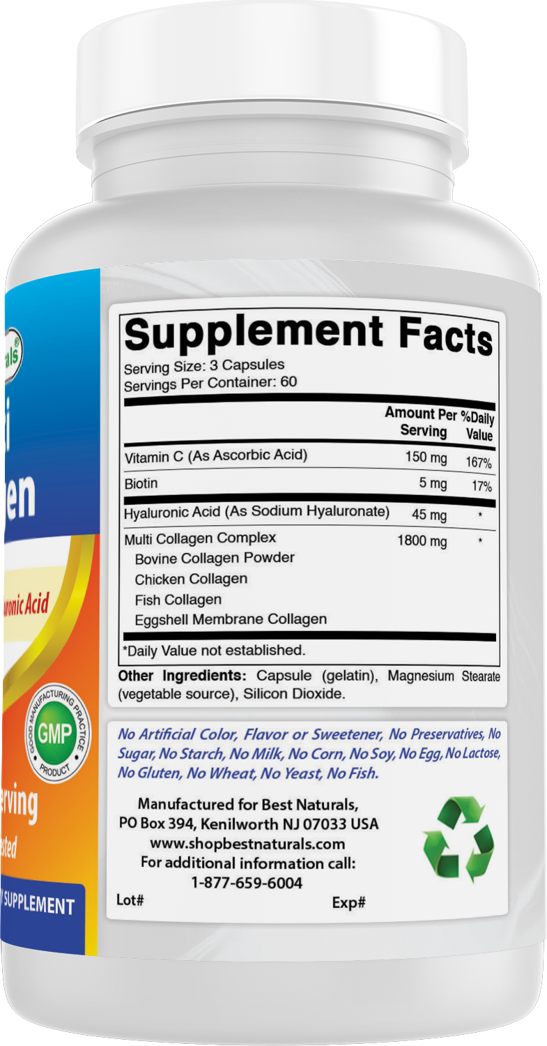 {"id":8182644277465,"title":"Best Naturals Multi Collagen Pills 2000mg for Women \u0026 Men - Hydrolyzed Collagen Peptides Capsules for Hair Skin and Nails with Types I II III V X, Biotin, Hyaluronic Acid \u0026 Vitamin C","handle":"best-naturals-multi-collagen-pills-2000mg-for-women-men-hydrolyzed-collagen-peptides-capsules-for-hair-skin-and-nails-with-types-i-ii-iii-v-x-biotin-hyaluronic-acid-vitamin-c","description":"\u003cul class=\"a-unordered-list a-vertical a-spacing-mini\" data-mce-fragment=\"1\"\u003e\n\u003cli class=\"a-spacing-small\" data-mce-fragment=\"1\"\u003e\u003cspan class=\"a-list-item\" data-mce-fragment=\"1\"\u003e3rd Party Lab Tested for Purity \u0026amp; Quality.\u003c\/span\u003e\u003c\/li\u003e\n\u003cli class=\"a-spacing-small\" data-mce-fragment=\"1\"\u003e\u003cspan class=\"a-list-item\" data-mce-fragment=\"1\"\u003eMade with Bovine Collagen, Chicken Collagen, Fish Collagen, Eggshell Collagen, Vitamin C, Biotin, Hyaluronic Acid\u003c\/span\u003e\u003c\/li\u003e\n\u003cli class=\"a-spacing-small\" data-mce-fragment=\"1\"\u003e\u003cspan class=\"a-list-item\" data-mce-fragment=\"1\"\u003eNon-GMO \u0026amp; Gluten Free.\u003c\/span\u003e\u003c\/li\u003e\n\u003cli class=\"a-spacing-small\" data-mce-fragment=\"1\"\u003e\u003cspan class=\"a-list-item\" data-mce-fragment=\"1\"\u003eProudly Made in USA, GMP Compliant, FDA Registered Facility.\u003c\/span\u003e\u003c\/li\u003e\n\u003cli class=\"a-spacing-small\" data-mce-fragment=\"1\"\u003e\u003cspan class=\"a-list-item\" data-mce-fragment=\"1\"\u003eNo Artificial Color, Flavor or Sweetener, No Preservatives, No Sugar, No Milk, No Corn, No Soy, No Egg, No Lactose, No Gluten, No Wheat, No Yeast. Sodium Free.\u003c\/span\u003e\u003c\/li\u003e\n\u003c\/ul\u003e","published_at":"2023-06-07T11:15:31-04:00","created_at":"2023-06-07T11:15:31-04:00","vendor":"shopbestnaturals.com","type":"","tags":["Herbal Products"],"price":999,"price_min":999,"price_max":999,"available":true,"price_varies":false,"compare_at_price":1999,"compare_at_price_min":1999,"compare_at_price_max":1999,"compare_at_price_varies":false,"variants":[{"id":43940944904409,"title":"Default Title","option1":"Default Title","option2":null,"option3":null,"sku":"817716018898","requires_shipping":true,"taxable":true,"featured_image":null,"available":true,"name":"Best Naturals Multi Collagen Pills 2000mg for Women \u0026 Men - Hydrolyzed Collagen Peptides Capsules for Hair Skin and Nails with Types I II III V X, Biotin, Hyaluronic Acid \u0026 Vitamin C","public_title":null,"options":["Default Title"],"price":999,"weight":0,"compare_at_price":1999,"inventory_management":"shopify","barcode":"817716018898","requires_selling_plan":false,"selling_plan_allocations":[]}],"images":["\/\/shopbestnaturals.com\/cdn\/shop\/files\/Image-1_c141fe23-b49d-470e-8c01-3a3eb2d0467f.jpg?v=1749677759","\/\/shopbestnaturals.com\/cdn\/shop\/files\/Image-4_68fca640-aa28-4d39-b1b8-c16d80527106.jpg?v=1756477482","\/\/shopbestnaturals.com\/cdn\/shop\/files\/Image-5_ae57f898-5e7a-481f-a2e7-65d8a6e92d37.jpg?v=1756477482","\/\/shopbestnaturals.com\/cdn\/shop\/files\/Image-6_9f2a9346-3e9d-491a-b8d4-d42abe86dced.jpg?v=1756477483","\/\/shopbestnaturals.com\/cdn\/shop\/files\/Image-7_f4531ef5-616f-4201-9128-13bf90a7eb99.jpg?v=1756477482","\/\/shopbestnaturals.com\/cdn\/shop\/files\/Image-2_f5266c19-7ddd-42e6-a2f2-f63ef6e11896.png?v=1756477482","\/\/shopbestnaturals.com\/cdn\/shop\/files\/Image-3_dee291f9-4a20-4b8c-9ee6-aae1eea5ef0c.png?v=1756477483"],"featured_image":"\/\/shopbestnaturals.com\/cdn\/shop\/files\/Image-1_c141fe23-b49d-470e-8c01-3a3eb2d0467f.jpg?v=1749677759","options":["Title"],"media":[{"alt":null,"id":33158272516313,"position":1,"preview_image":{"aspect_ratio":0.515,"height":2585,"width":1330,"src":"\/\/shopbestnaturals.com\/cdn\/shop\/files\/Image-1_c141fe23-b49d-470e-8c01-3a3eb2d0467f.jpg?v=1749677759"},"aspect_ratio":0.515,"height":2585,"media_type":"image","src":"\/\/shopbestnaturals.com\/cdn\/shop\/files\/Image-1_c141fe23-b49d-470e-8c01-3a3eb2d0467f.jpg?v=1749677759","width":1330},{"alt":null,"id":37677488406745,"position":2,"preview_image":{"aspect_ratio":1.0,"height":1500,"width":1500,"src":"\/\/shopbestnaturals.com\/cdn\/shop\/files\/Image-4_68fca640-aa28-4d39-b1b8-c16d80527106.jpg?v=1756477482"},"aspect_ratio":1.0,"height":1500,"media_type":"image","src":"\/\/shopbestnaturals.com\/cdn\/shop\/files\/Image-4_68fca640-aa28-4d39-b1b8-c16d80527106.jpg?v=1756477482","width":1500},{"alt":null,"id":37677488439513,"position":3,"preview_image":{"aspect_ratio":1.0,"height":1500,"width":1500,"src":"\/\/shopbestnaturals.com\/cdn\/shop\/files\/Image-5_ae57f898-5e7a-481f-a2e7-65d8a6e92d37.jpg?v=1756477482"},"aspect_ratio":1.0,"height":1500,"media_type":"image","src":"\/\/shopbestnaturals.com\/cdn\/shop\/files\/Image-5_ae57f898-5e7a-481f-a2e7-65d8a6e92d37.jpg?v=1756477482","width":1500},{"alt":null,"id":37677488472281,"position":4,"preview_image":{"aspect_ratio":1.0,"height":1500,"width":1500,"src":"\/\/shopbestnaturals.com\/cdn\/shop\/files\/Image-6_9f2a9346-3e9d-491a-b8d4-d42abe86dced.jpg?v=1756477483"},"aspect_ratio":1.0,"height":1500,"media_type":"image","src":"\/\/shopbestnaturals.com\/cdn\/shop\/files\/Image-6_9f2a9346-3e9d-491a-b8d4-d42abe86dced.jpg?v=1756477483","width":1500},{"alt":null,"id":37677488505049,"position":5,"preview_image":{"aspect_ratio":1.0,"height":1500,"width":1500,"src":"\/\/shopbestnaturals.com\/cdn\/shop\/files\/Image-7_f4531ef5-616f-4201-9128-13bf90a7eb99.jpg?v=1756477482"},"aspect_ratio":1.0,"height":1500,"media_type":"image","src":"\/\/shopbestnaturals.com\/cdn\/shop\/files\/Image-7_f4531ef5-616f-4201-9128-13bf90a7eb99.jpg?v=1756477482","width":1500},{"alt":null,"id":37677488537817,"position":6,"preview_image":{"aspect_ratio":0.523,"height":1500,"width":785,"src":"\/\/shopbestnaturals.com\/cdn\/shop\/files\/Image-2_f5266c19-7ddd-42e6-a2f2-f63ef6e11896.png?v=1756477482"},"aspect_ratio":0.523,"height":1500,"media_type":"image","src":"\/\/shopbestnaturals.com\/c