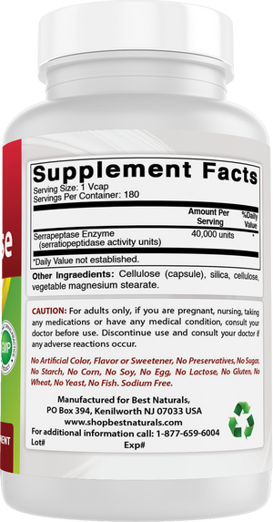 Best Naturals Serrapeptase 40000 SPUs 180 Vegetarian Capsules