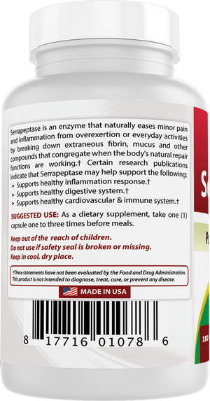 • 40,000 SPUs of Serrapeptase per Vegetarian Capsule - 180 Capsules per Bottle.
