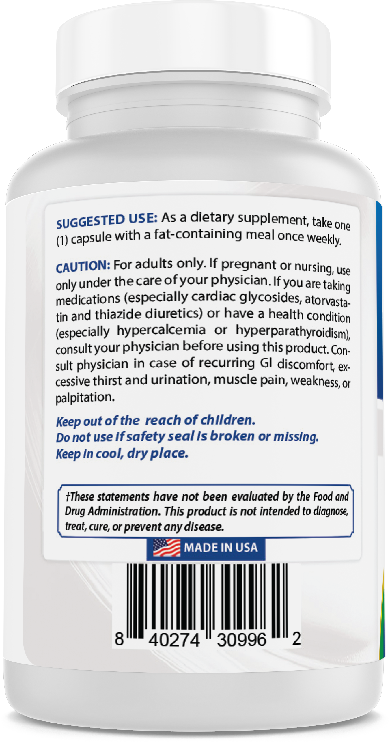 • 90 Capsules Per Bottle – Provides a 90 weeks supply at one capsule per week.