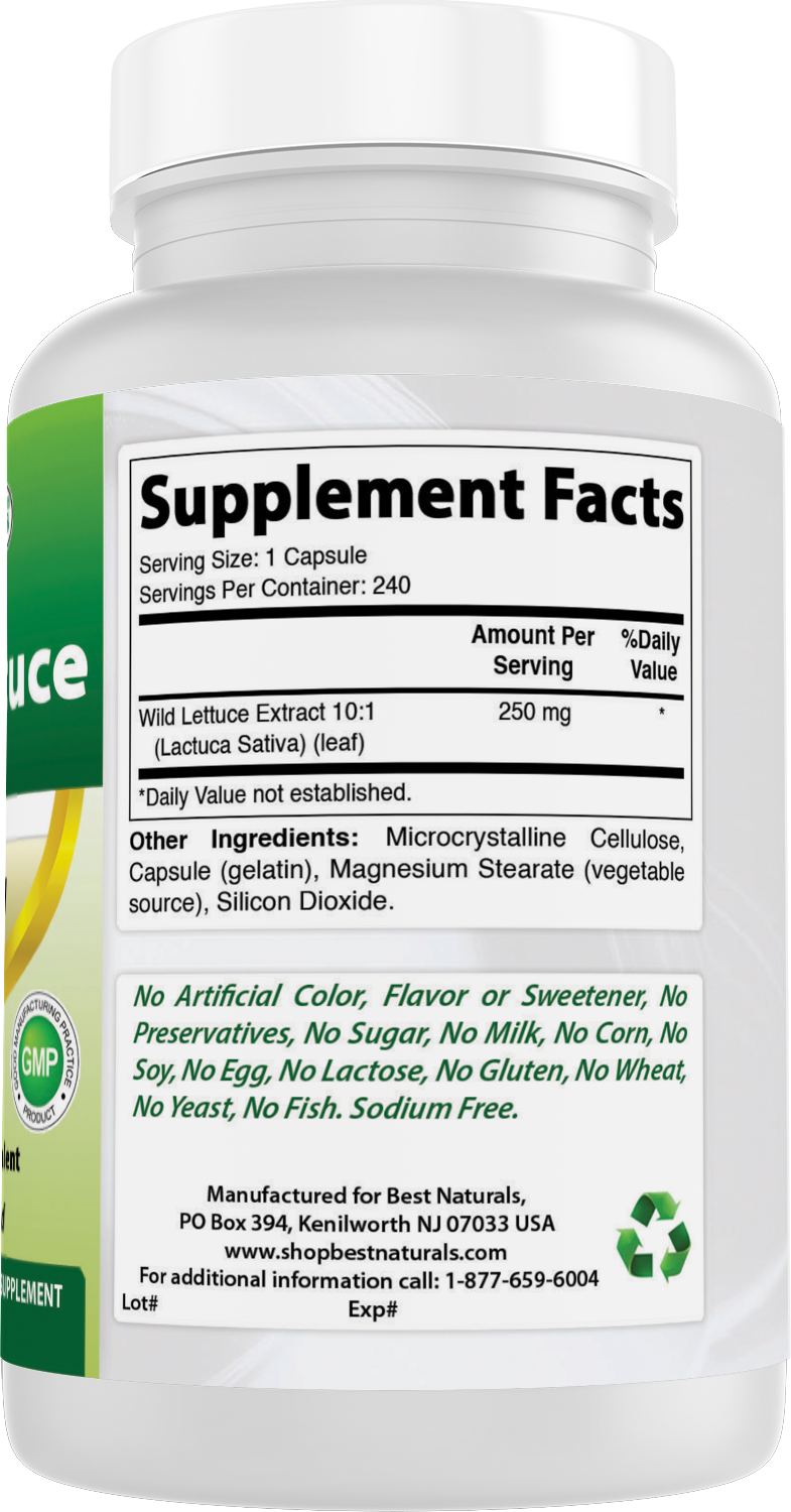 {"id":8623245131993,"title":"Best Naturals Wild Lettuce 10:1 Extract 250 mg (Equivalent to 2500 mg Wild Lettuce Powder) - 240 Capsules","handle":"best-naturals-wild-lettuce-10-1-extract-250-mg-equivalent-to-2500-mg-wild-lettuce-powder-240-capsules","description":"\u003cul class=\"a-unordered-list a-vertical a-spacing-mini\" data-mce-fragment=\"1\"\u003e\n\u003cli class=\"a-spacing-mini\" data-mce-fragment=\"1\"\u003e\u003cspan class=\"a-list-item\" data-mce-fragment=\"1\"\u003e3rd Party Lab Tested for Purity \u0026amp; Quality.\u003c\/span\u003e\u003c\/li\u003e\n\u003cli class=\"a-spacing-mini\" data-mce-fragment=\"1\"\u003e\u003cspan class=\"a-list-item\" data-mce-fragment=\"1\"\u003eSupoorts Relaxation*\u003c\/span\u003e\u003c\/li\u003e\n\u003cli class=\"a-spacing-mini\" data-mce-fragment=\"1\"\u003e\u003cspan class=\"a-list-item\" data-mce-fragment=\"1\"\u003eNon-GMO \u0026amp; Gluten Free.\u003c\/span\u003e\u003c\/li\u003e\n\u003cli class=\"a-spacing-mini\" data-mce-fragment=\"1\"\u003e\u003cspan class=\"a-list-item\" data-mce-fragment=\"1\"\u003eProudly Made in USA, GMP Compliant, FDA Registered Facility.\u003c\/span\u003e\u003c\/li\u003e\n\u003cli class=\"a-spacing-mini\" data-mce-fragment=\"1\"\u003e\u003cspan class=\"a-list-item\" data-mce-fragment=\"1\"\u003eNo Artificial Color, Flavor or Sweetener, No Preservatives, No Sugar, No Milk, No Corn, No Soy, No Egg, No Lactose, No Gluten, No Wheat, No Yeast. Sodium Free.\u003c\/span\u003e\u003c\/li\u003e\n\u003c\/ul\u003e","published_at":"2024-04-04T17:23:21-04:00","created_at":"2024-04-04T17:23:21-04:00","vendor":"shopbestnaturals.com","type":"","tags":[],"price":899,"price_min":899,"price_max":899,"available":true,"price_varies":false,"compare_at_price":1799,"compare_at_price_min":1799,"compare_at_price_max":1799,"compare_at_price_varies":false,"variants":[{"id":44976783753433,"title":"Default Title","option1":"Default Title","option2":null,"option3":null,"sku":"817716019611","requires_shipping":true,"taxable":true,"featured_image":null,"available":true,"name":"Best Naturals Wild Lettuce 10:1 Extract 250 mg (Equivalent to 2500 mg Wild Lettuce Powder) - 240 Capsules","public_title":null,"options":["Default Title"],"price":899,"weight":0,"compare_at_price":1799,"inventory_management":"shopify","barcode":"817716019611","requires_selling_plan":false,"selling_plan_allocations":[]}],"images":["\/\/shopbestnaturals.com\/cdn\/shop\/files\/Image-1_6ae5f8c3-3776-4963-a32f-858d92769fb9.jpg?v=1749677838","\/\/shopbestnaturals.com\/cdn\/shop\/files\/Image-4_fc883755-c8c8-4321-988a-425e1c882675.png?v=1758572000","\/\/shopbestnaturals.com\/cdn\/shop\/files\/Image-5_70fa5b9a-3fea-40ea-8bdd-f85c8fae3583.png?v=1758572000","\/\/shopbestnaturals.com\/cdn\/shop\/files\/Image-6_b3408546-bfae-41b6-9143-bb3ce66f9126.jpg?v=1758572001","\/\/shopbestnaturals.com\/cdn\/shop\/files\/Image-7_fbeb77e1-1d78-4788-a968-a057b3234961.jpg?v=1758572000","\/\/shopbestnaturals.com\/cdn\/shop\/files\/Image-2_91eb6c92-6936-4dc1-b450-84a3de14c507.png?v=1758572000","\/\/shopbestnaturals.com\/cdn\/shop\/files\/Image-3_bd40de28-dfb1-42be-9927-8ca9a42212eb.png?v=1758572000"],"featured_image":"\/\/shopbestnaturals.com\/cdn\/shop\/files\/Image-1_6ae5f8c3-3776-4963-a32f-858d92769fb9.jpg?v=1749677838","options":["Title"],"media":[{"alt":null,"id":34551521116377,"position":1,"preview_image":{"aspect_ratio":0.515,"height":2585,"width":1330,"src":"\/\/shopbestnaturals.com\/cdn\/shop\/files\/Image-1_6ae5f8c3-3776-4963-a32f-858d92769fb9.jpg?v=1749677838"},"aspect_ratio":0.515,"height":2585,"media_type":"image","src":"\/\/shopbestnaturals.com\/cdn\/shop\/files\/Image-1_6ae5f8c3-3776-4963-a32f-858d92769fb9.jpg?v=1749677838","width":1330},{"alt":null,"id":37766634832089,"position":2,"preview_image":{"aspect_ratio":1.0,"height":1500,"width":1500,"src":"\/\/shopbestnaturals.com\/cdn\/shop\/files\/Image-4_fc883755-c8c8-4321-988a-425e1c882675.png?v=1758572000"},"aspect_ratio":1.0,"height":1500,"media_type":"image","src":"\/\/shopbestnaturals.com\/cdn\/shop\/files\/Image-4_fc883755-c8c8-4321-988a-425e1c882675.png?v=1758572000","width":1500},{"alt":null,"id":37766634864857,"position":3,"preview_image":{"aspect_ratio":1.0,"height":1500,"width":1500,"src":"\/\/shopbestnaturals.com\/cdn\/shop\/files\/Image-5_70fa5b9a-3fea-40ea-8bdd-f85c8fae3583.png?v=1758572000"},"aspect_ratio":1.0,"height":1500,"media_type":"image","src":"\/\/shopbestnaturals.com\/cdn\/shop\/files\/Image-5_70fa5b9a-3fea-40ea-8bdd-f85c8fae3583.png?v=1758572000","width":1500},{"alt":null,"id":37766634963161,"position":4,"preview_image":{"aspect_ratio":1.0,"height":1500,"width":1500,"src":"\/\/shopbestnaturals.com\/cdn\/shop\/files\/Image-6_b3408546-bfae-41b6-9143-bb3ce66f9126.jpg?v=1758572001"},"aspect_ratio":1.0,"height":1500,"media_type":"image","src":"\/\/shopbestnaturals.com\/cdn\/shop\/files\/Image-6_b3408546-bfae-41b6-9143-bb3ce66f9126.jpg?v=1758572001","width":1500},{"alt":null,"id":37766635028697,"position":5,"preview_image":{"aspect_ratio":1.0,"height":1500,"width":1500,"src":"\/\/shopbestnaturals.com\/cdn\/shop\/files\/Image-7_fbeb77e1-1d78-4788-a968-a057b3234961.jpg?v=1758572000"},"aspect_ratio":1.0,"height":1500,"media_type":"image","src":"\/\/shopbestnaturals.com\/cdn\/shop\/files\/Image-7_fbeb77e1-1d78-4788-a968-a057b3234961.jpg?v=1758572000","width":1500},{"alt":null,"id":37766635061465,"position":6,"preview_image":{"aspect_ratio":0.523,"height":1500,"width":785,"src":"\/\/shopbestnaturals.com\/cdn\/shop\/files\/Image-2_91eb6c92-6936-4dc1-b450-84a3de14c507.png?v=1758572000"},"aspect_ratio":0.523,"height":1500,"media_type":"image","src":"\/\/shopbestnaturals.com\/cdn\/shop\/files\/Image-2_91eb6c92-6936-4dc1-b450-84a3de14c507.png?v=1758572000","width":785},{"alt":null,"id":37766635094233,"position":7,"preview_image":{"aspect_ratio":0.523,"height":1500,"width":785,"src":"\/\/shopbestnaturals.com\/cdn\/shop\/files\/Image-3_bd40de28-dfb1-42be-9927-8ca9a42212eb.png?v=1758572000"},"aspect_ratio":0.523,"height":1500,"media_typ